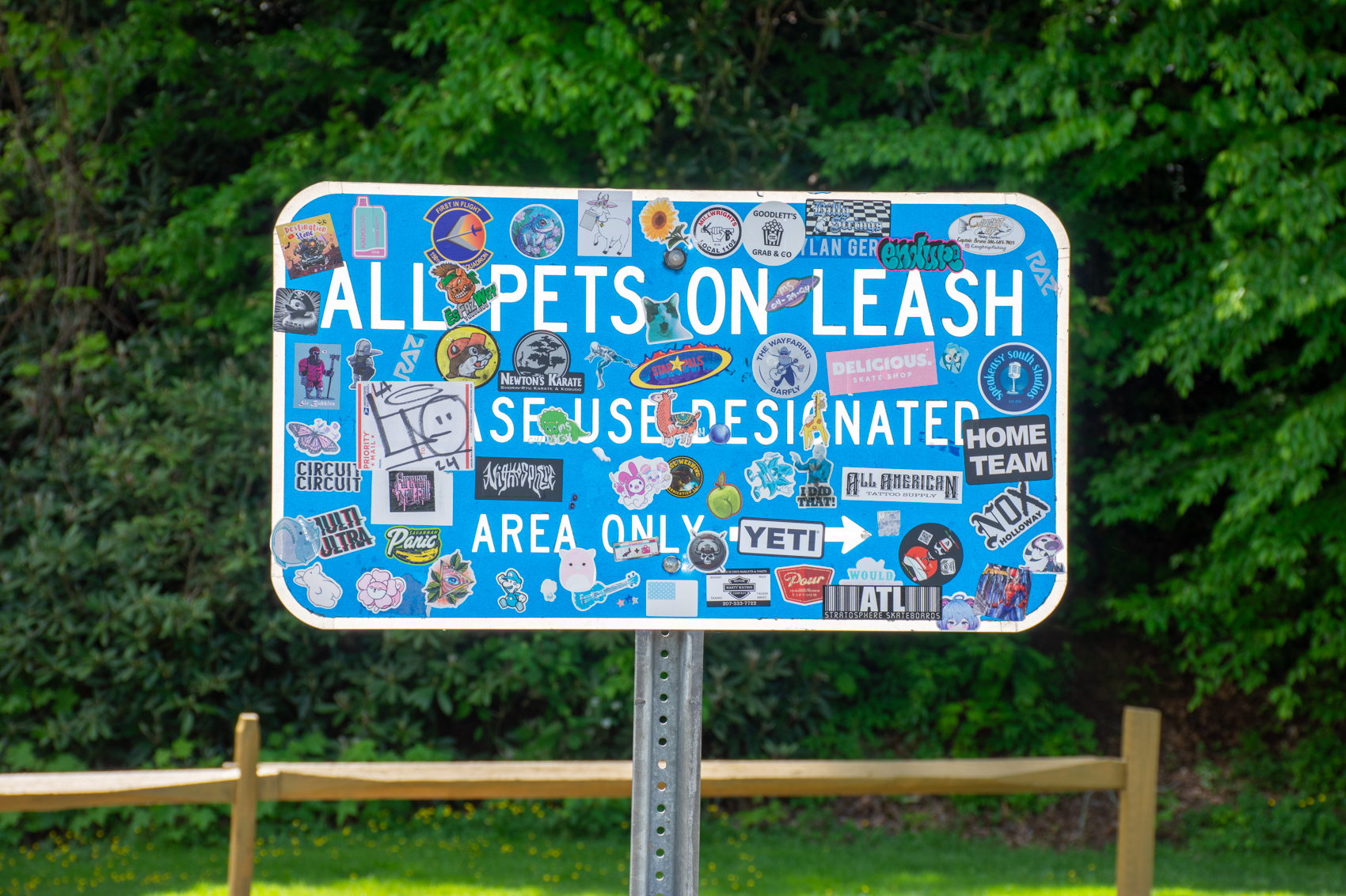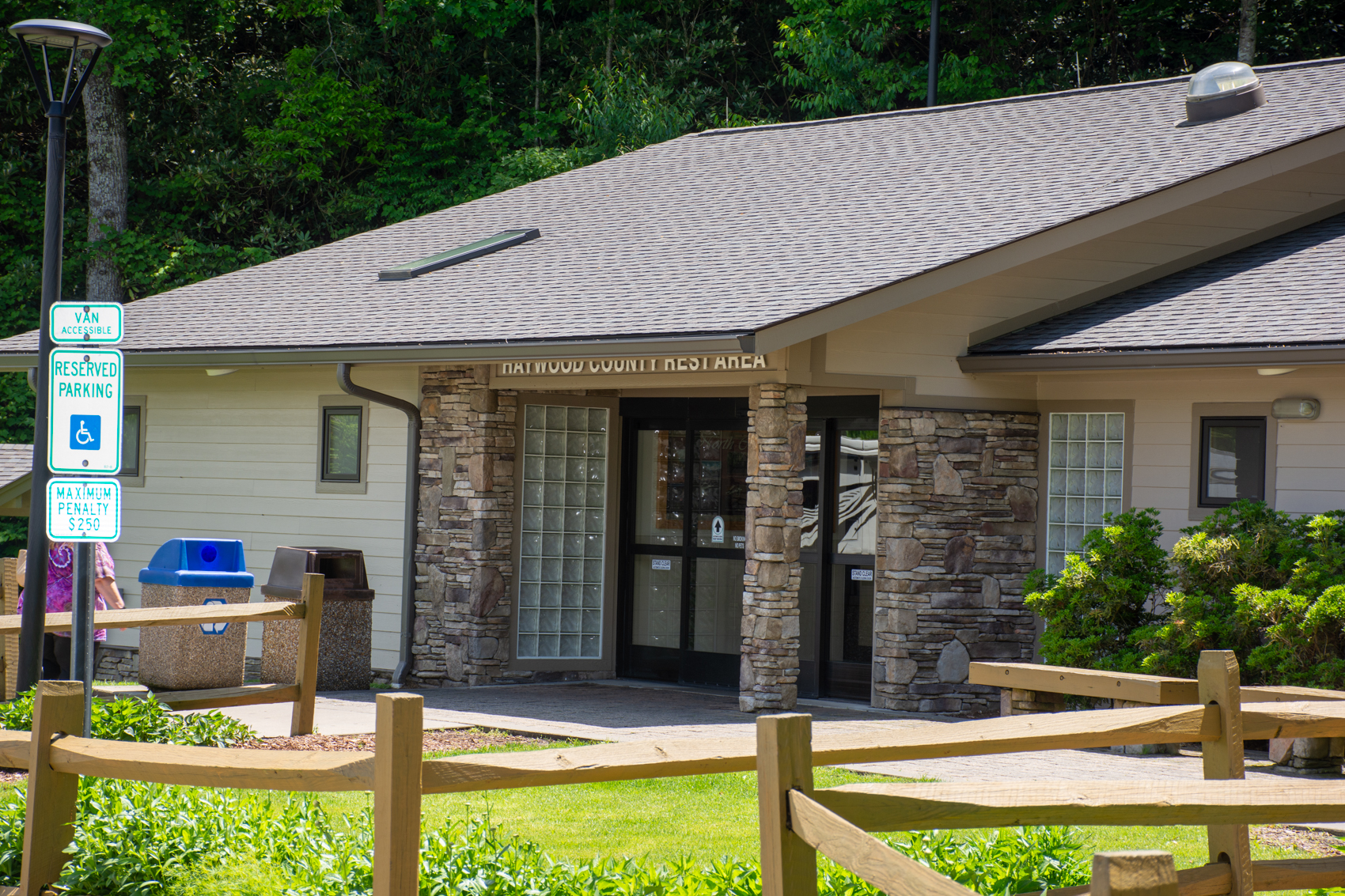 Haywood County, North Carolina rest area. Lots of stickers on a sign.