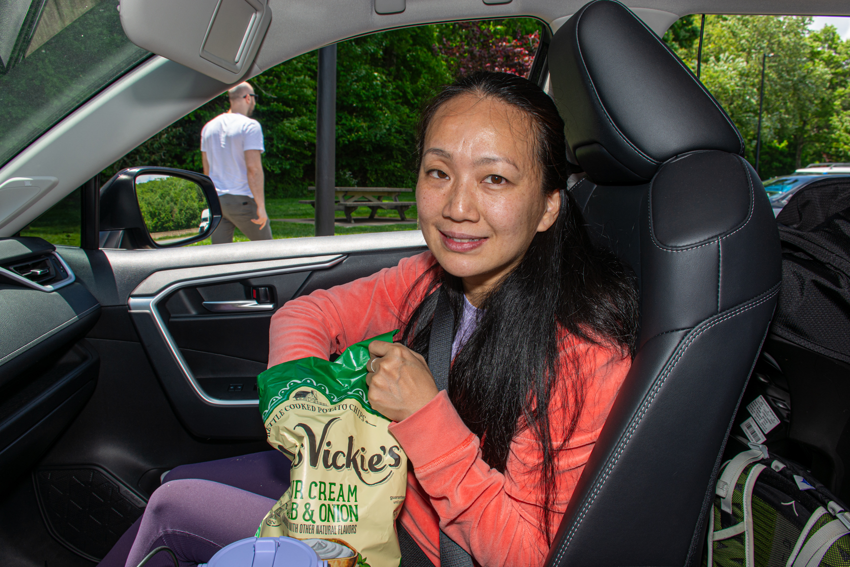 Haocheng, Carol Ann, and I breaking for lunch. We decided to bring our own food both days after the overpriced and less-than-clean food we consumed last year from the food vendors.