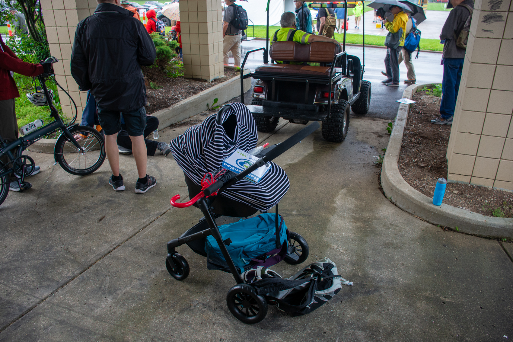 Friday morning at the Hamvention. We arrived at around 8:00am, and the gates opened at 9:00am. It's good to arrive early to assure that we are able to park at the site of the hamfest rather than in a remote lot several miles away that would have required a school bus shuttle. We did that last year, but this year with a baby that definitely would have been less than ideal. Fortunately our parking worked out both days that we attended.