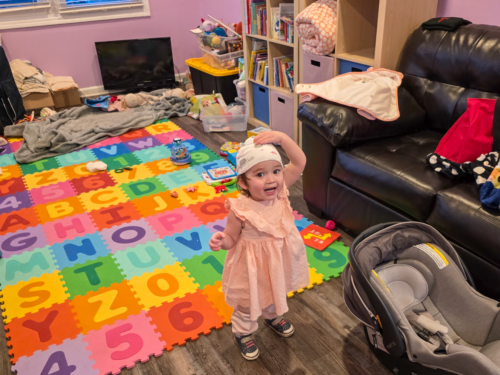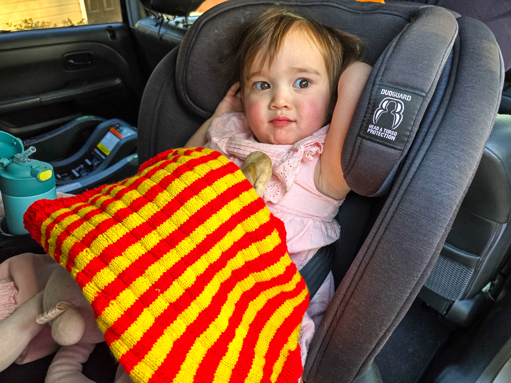 Carol Ann improvised a hat while I was preparing the vehicle.