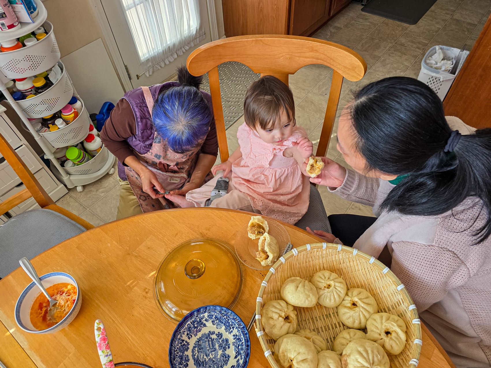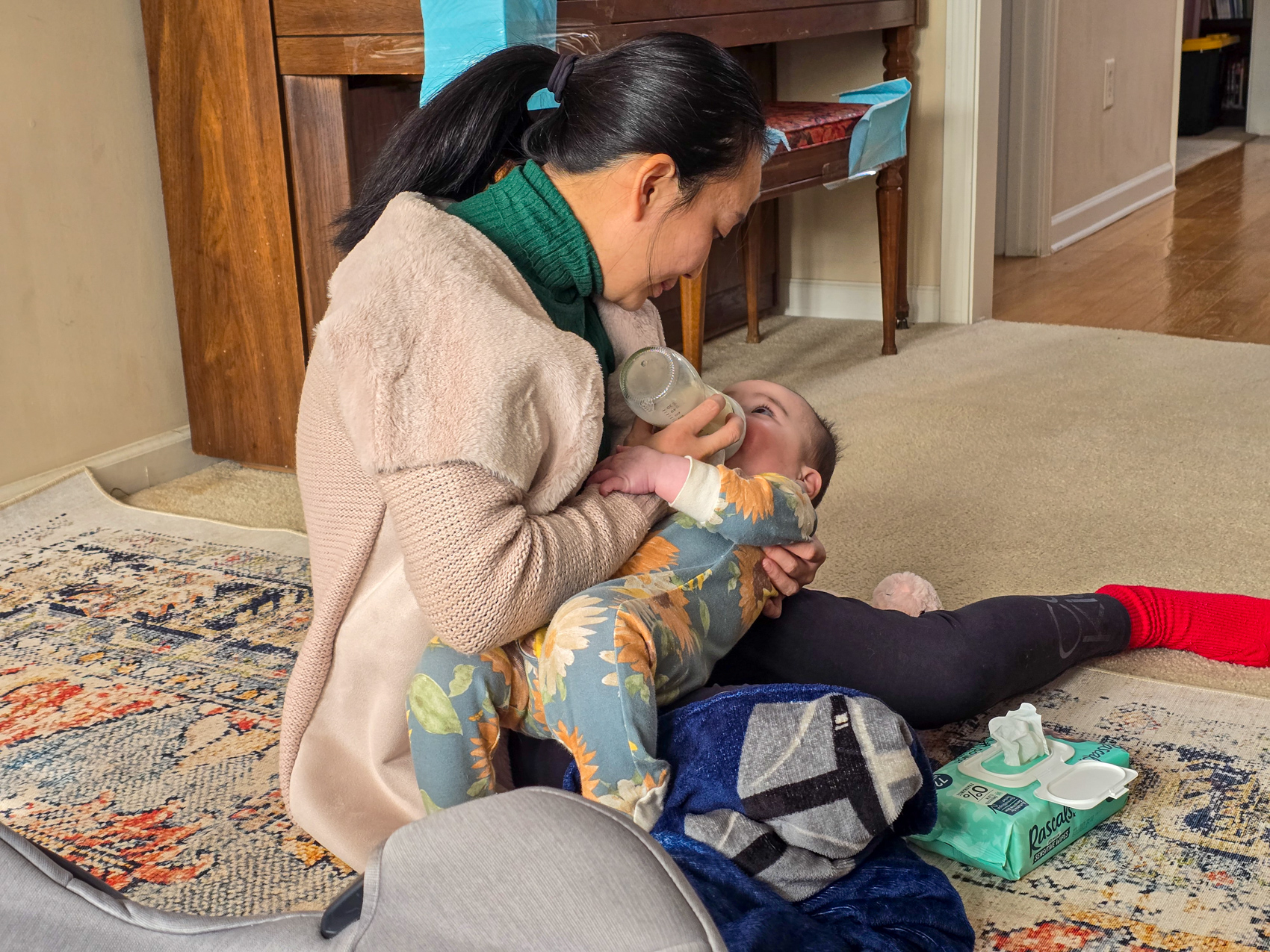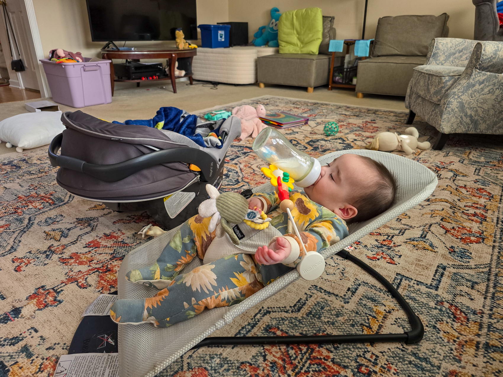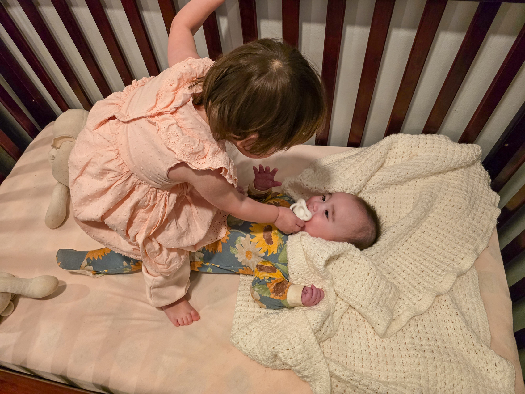 We visited my mom and Doug after leaving Stone Mountain, and when we returned home to Athens Carol Ann helped Louise with the pacifier. Louise is starting to experience pain due to her emerging teeth.